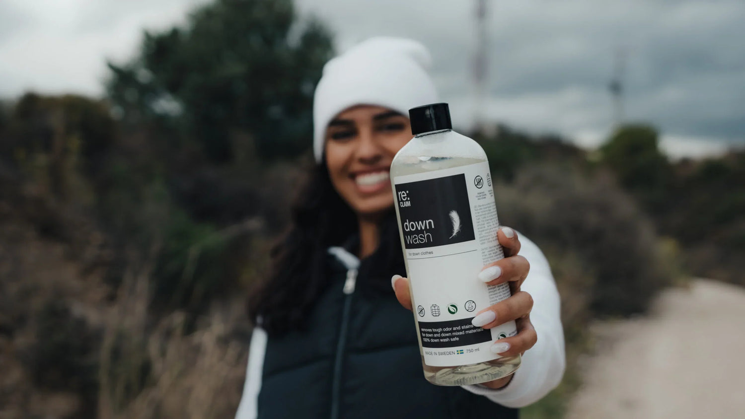re:CLAIM Down Wash is a sensitive washing detergent manufactured in Sweden. The unique formula is developed for washing down and down mixed clothes in 30C and hand wash.